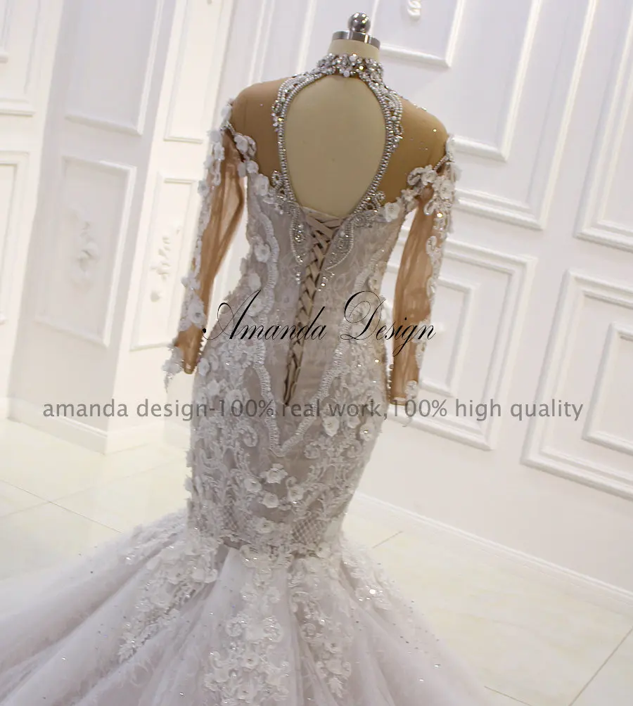 Amanda Design Vestito Sposa High Neck Long Sleeve Crystal Mermaid Africa Wedding Dress For Bride Wedding Dresses AliExpress, Vestito Fix Design Embellished Bandeau Maxi Dress In Almond