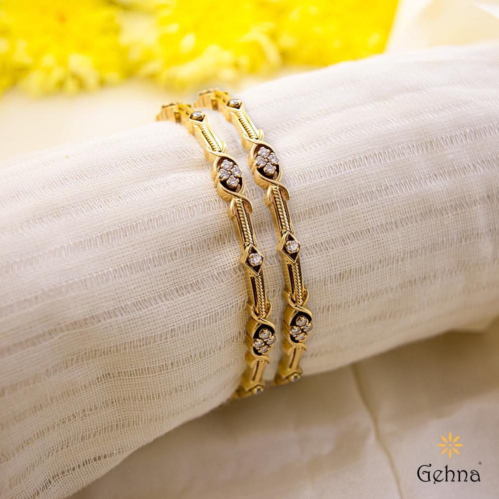Heavy Solid Flower Design Gold Bangles Set Of Two Buy Online, Shop Traditional Elegance Diamond and Gold Bangles Online in India, Buy Latest Light Weight Stunning Gold Broad Gold Bangles Designs, Buy Gold Bangles Designs In 10 To 20 Grams Online At Best Prices, BNG808 Size Unique Light Weight Party Wear Kada Bangles for Ladies