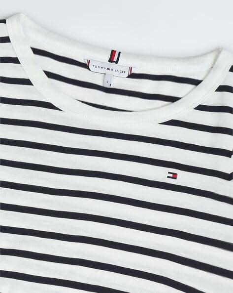 Buy White Tshirts for Women by TOMMY HILFIGER Online, Tommy Hilfiger Men Yellow Navy Striped Padington Rugby Polo Pure Cotton T-shirt, Tommy hilfiger Rib Stripe Skinny Fit 3/4 sleeve T-shirt Blue| Dressinn, Tommy Hilfiger Slub Tee Slub Cotton T-Shirt